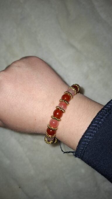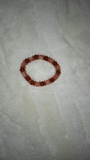 Je to krásny náramok z červených sklenených korálikov.Je vhodný pre dieťa aj pre dospeláka.