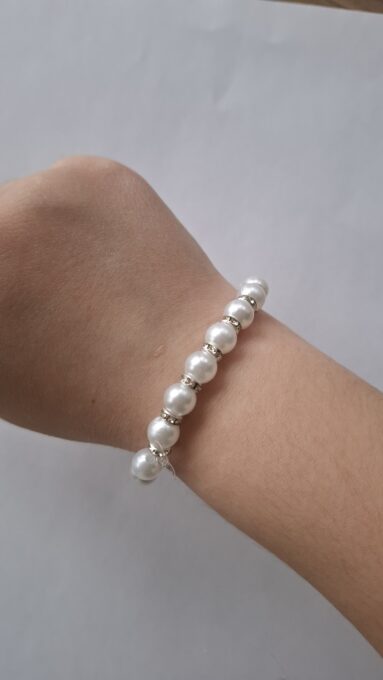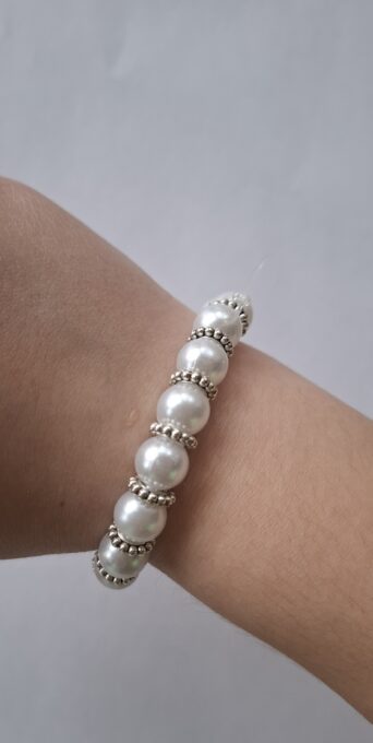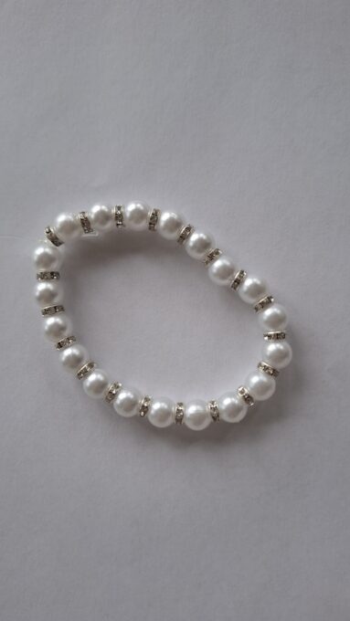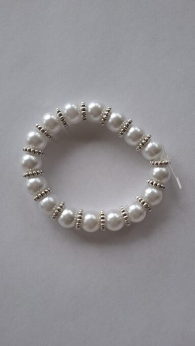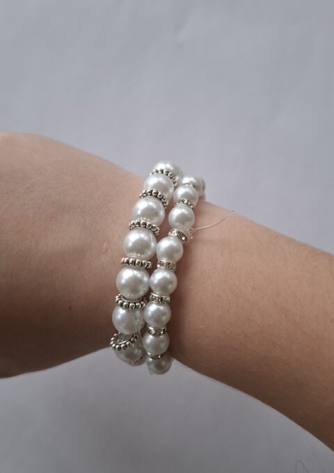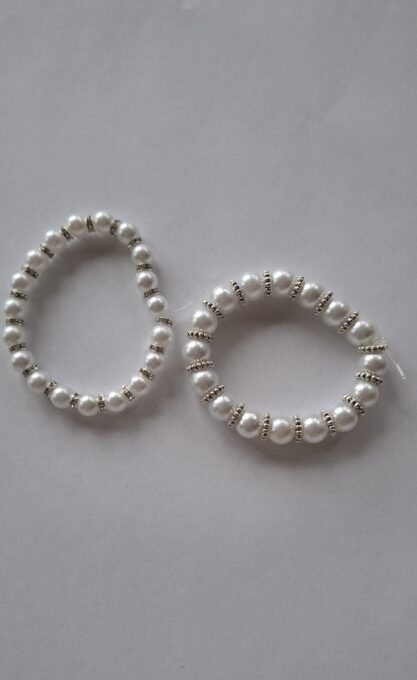 Je to súprava dvoch bielych náramkov.Jeden je z väčších korálikov a druhý z menších.Je vhodný pre dieťa aj pre dospeláka.