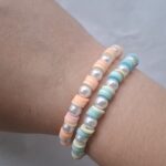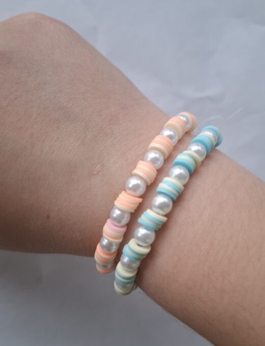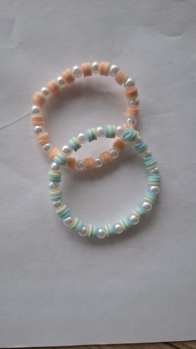 Je to krásna súprava dvoch náramkov.Jeden je do modra a druhý do oranžova.Je vhodný najmä pre deti.