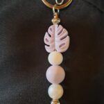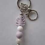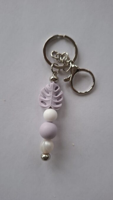 Je to krásna kľúčenka z fialových a bielych silikónových korálok.Dá sa na hocičo pripnúť napríklad: ruksak,kabelka,kľúče…