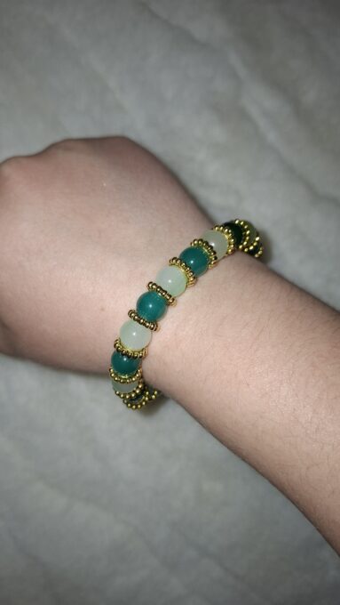 Je to krásny náramok zo sklenených korálok.Je vhodný pre dieťa aj pre dospeláka.