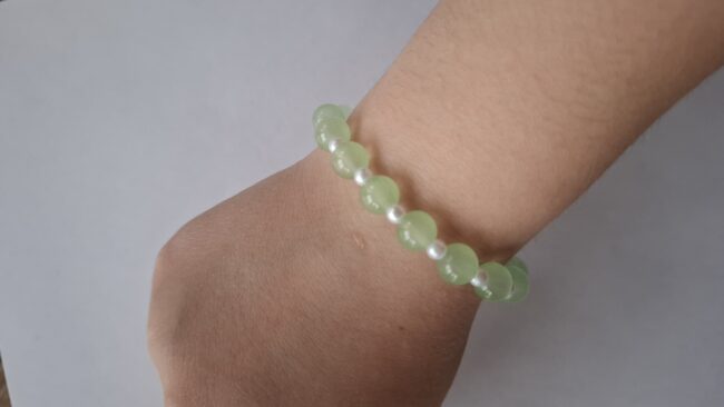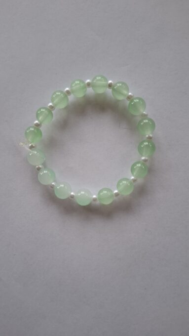 Je to krásny náramok zo sklenených korálok.Je vhodný pre deti aj pre dospelákov.