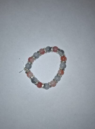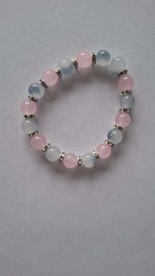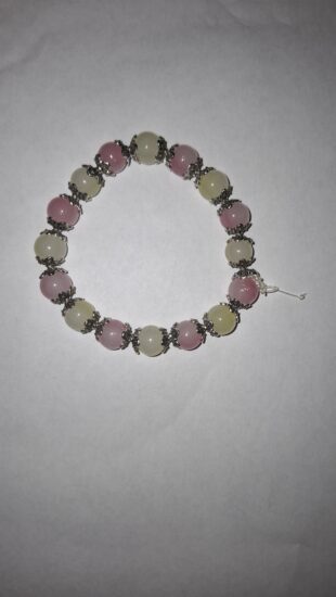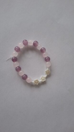 Je to krásny náramok z fialových a rúžovích sklenených korálikov.Je vhodný pre dieťa aj pre dospeláka.