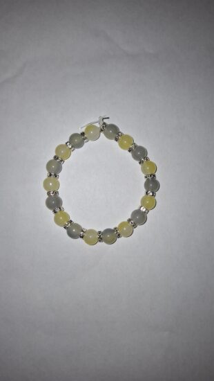 Je to súprava dvoch bielych náramkov.Jeden je z väčších korálikov a druhý z menších.Je vhodný pre dieťa aj pre dospeláka.