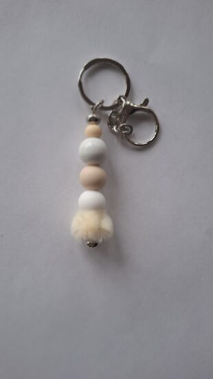 Je to krásna kľúčenka zo svetložltých a bielych silikónových korálok.Dá sa na hocičo pripnúť napríklad:ruksak,kabelka,kľúče...